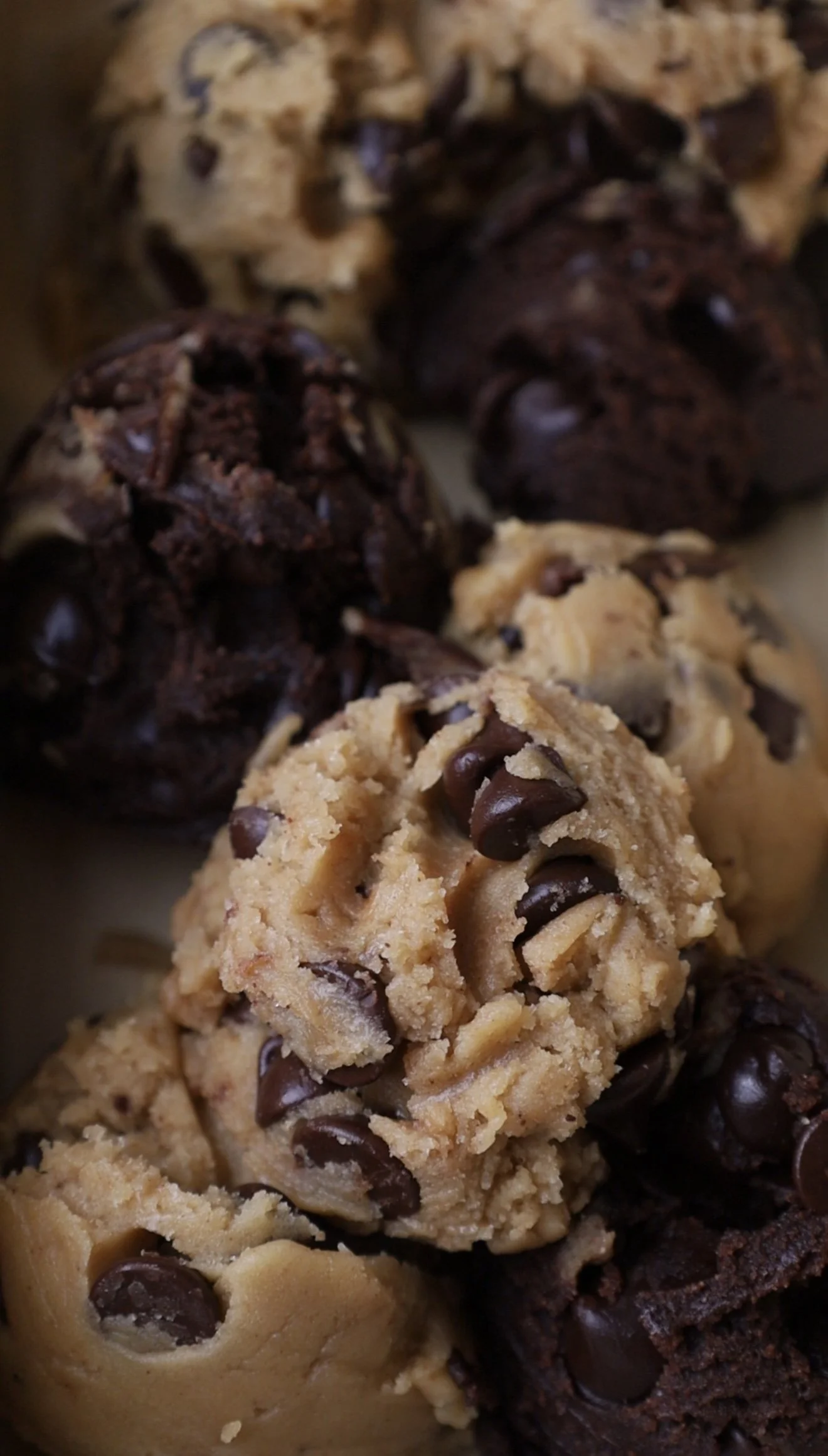 Add 3/4 cups chocolate chips to the regular dough and 1/4 cup to the chocolate dough and mix until combined.